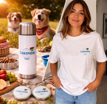 Vous trouverez ici une sélection d'articles et d'accessoires personnalisés aux couleurs de Canisphère Relais.