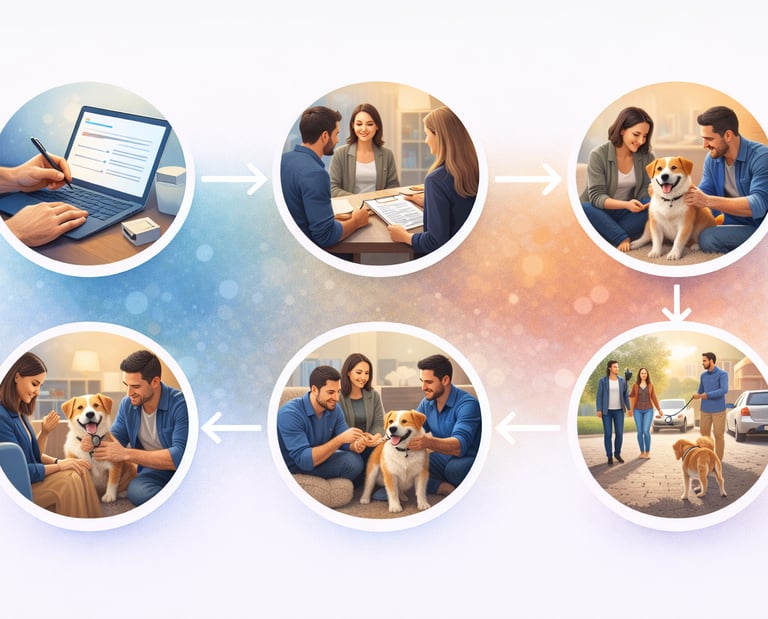 La famille d’accueil héberge temporairement un chien confié par une association.