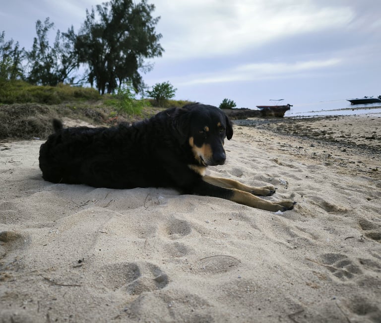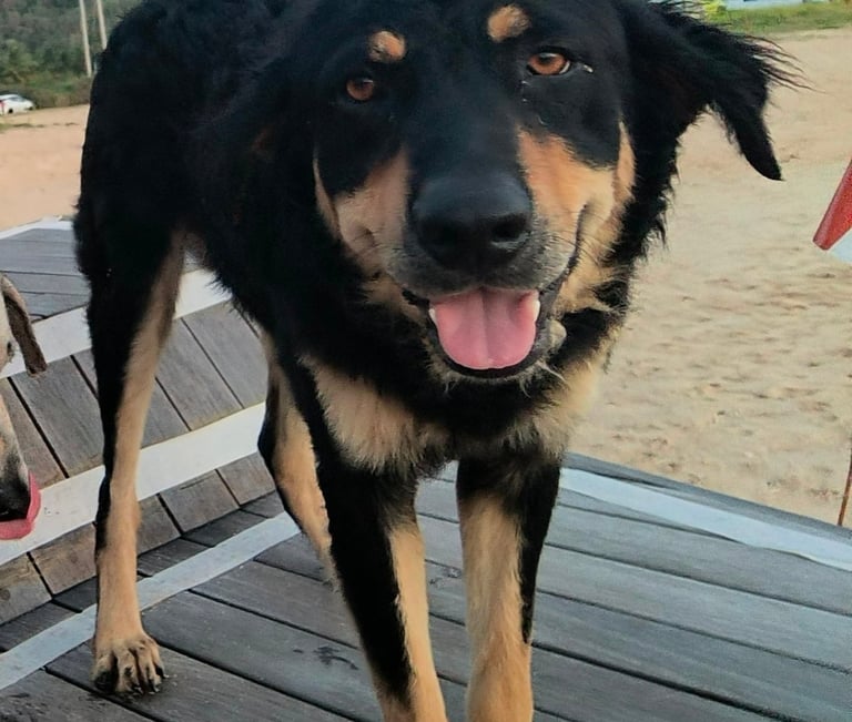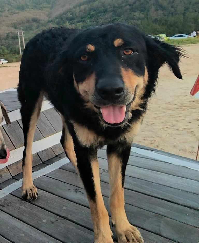 Maxou est un chien adorable qui vit actuellement sur une plage de l’île Maurice. Très proche de l’humain, il s’entend avec tout le monde : chiens, chats, enfants.