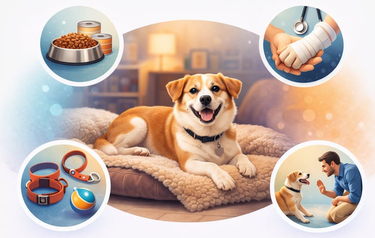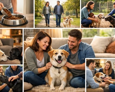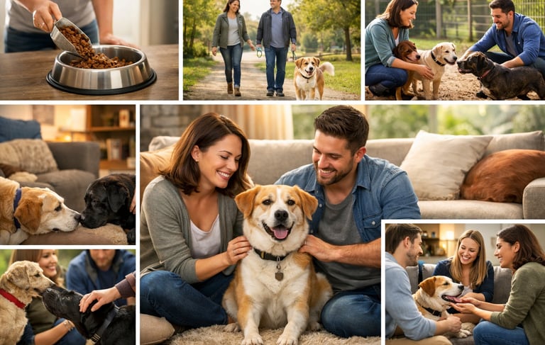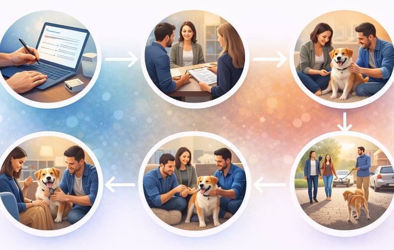 La famille d’accueil héberge temporairement un chien confié par une association.