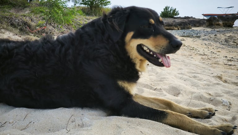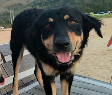 Maxou est un chien adorable qui vit actuellement sur une plage de l’île Maurice. Très proche de l’humain, il s’entend avec tout le monde : chiens, chats, enfants.